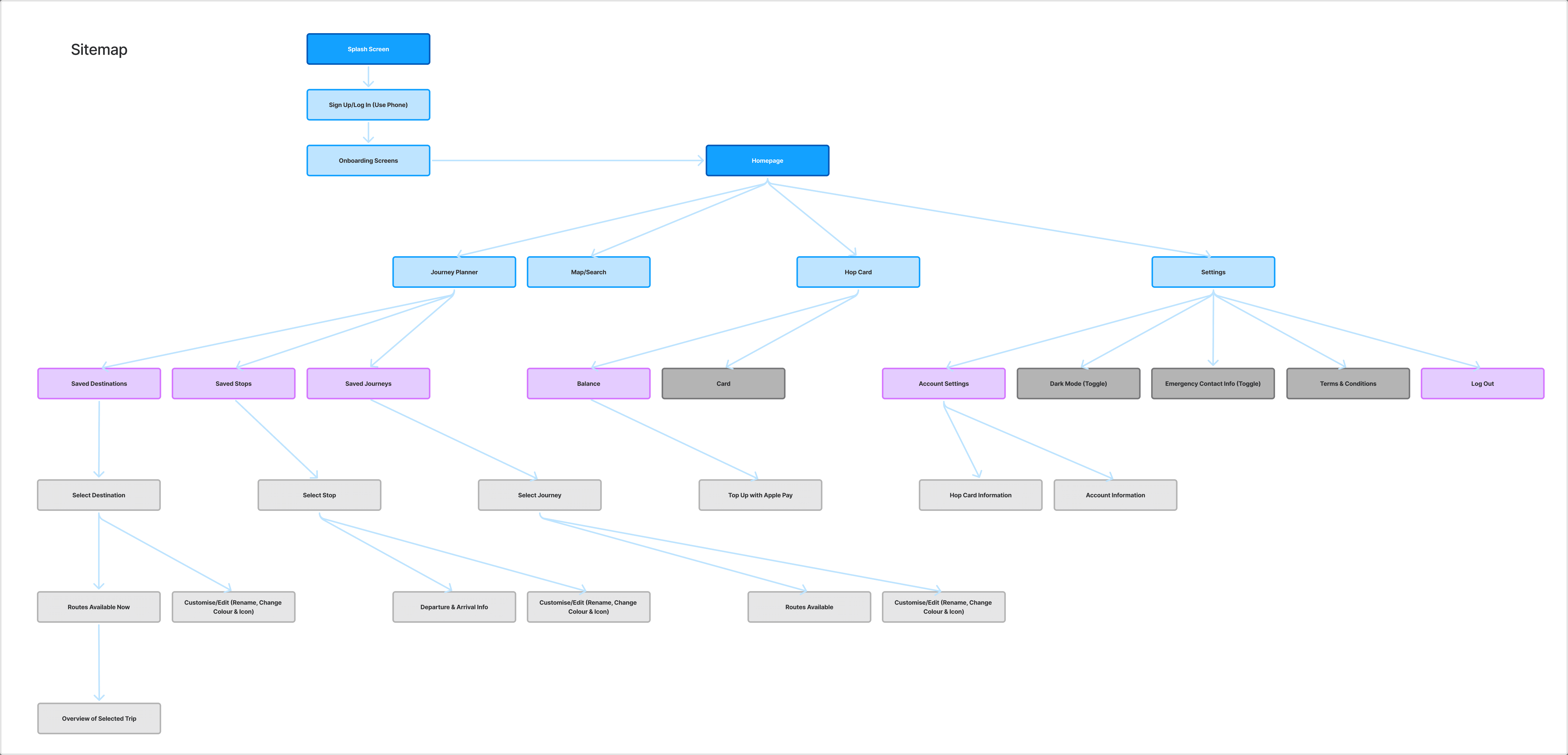 With research completed, i was able to start brainstorming ideas on how to tackle this project. Starting with a sitemap and a look at the brand identity of Auckland Transport.