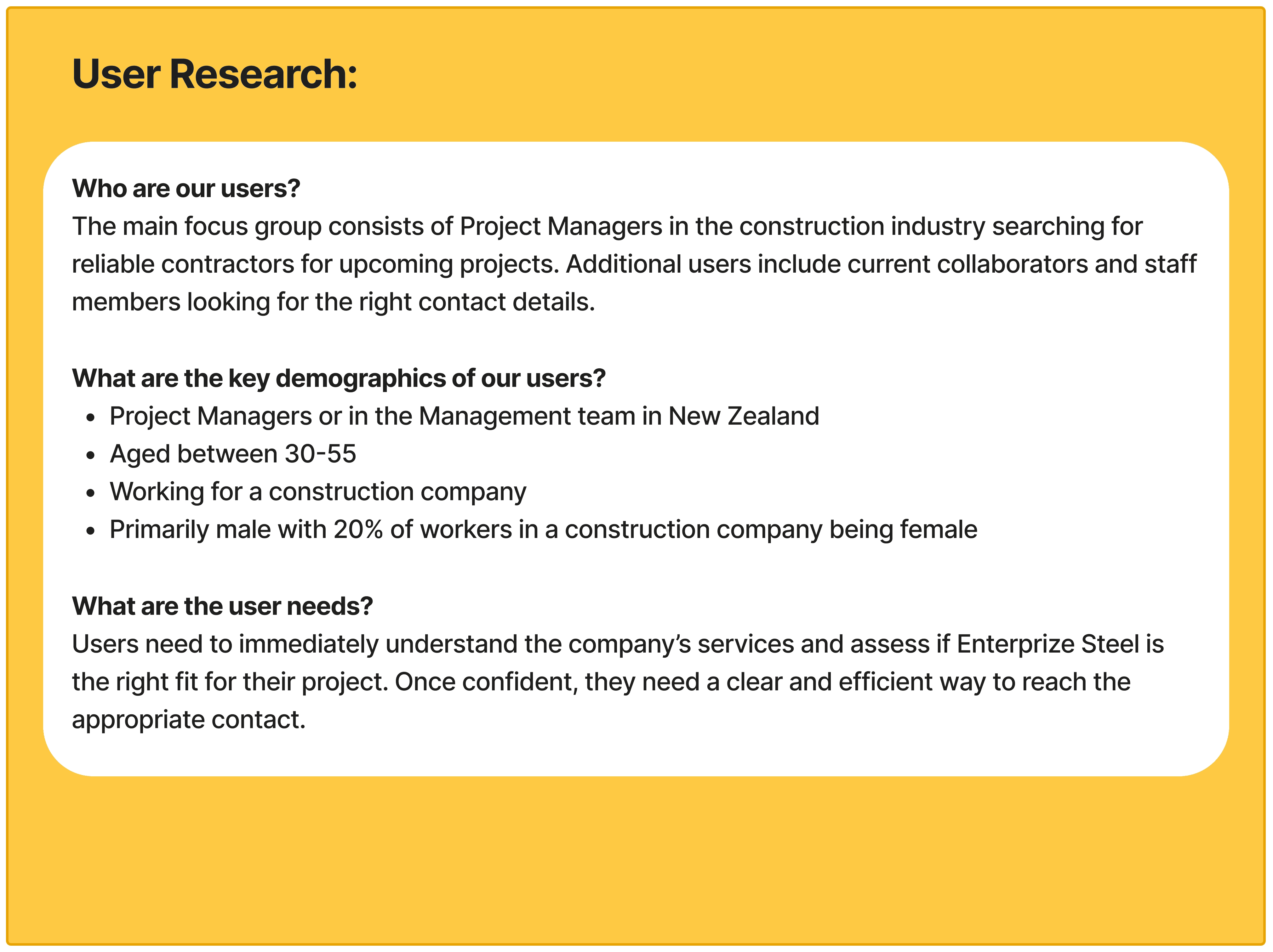 Clients have trouble finding key information and projects on the Enterprize Steel website. Poor navigation, dated visuals and information as well as limited accessibility create friction, reducing trust and engagement.