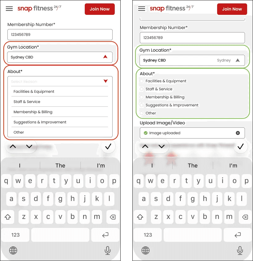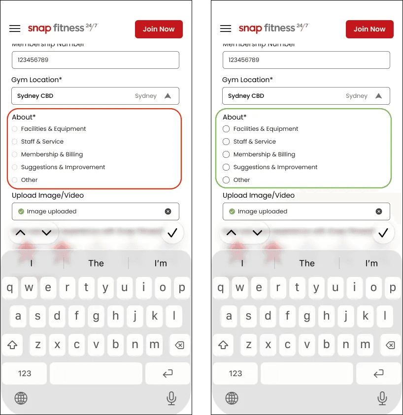 Providing users with a feedback form will provide valuable insights into the common issues that users encounter with Snap Fitness. Feedback can be categorised by issue and location allowing us to pinpoint where the areas for improvement are. Having an area for providing feedback shows that we care about the users emotions and thoughts, establishing more trust and a better relationship with users.