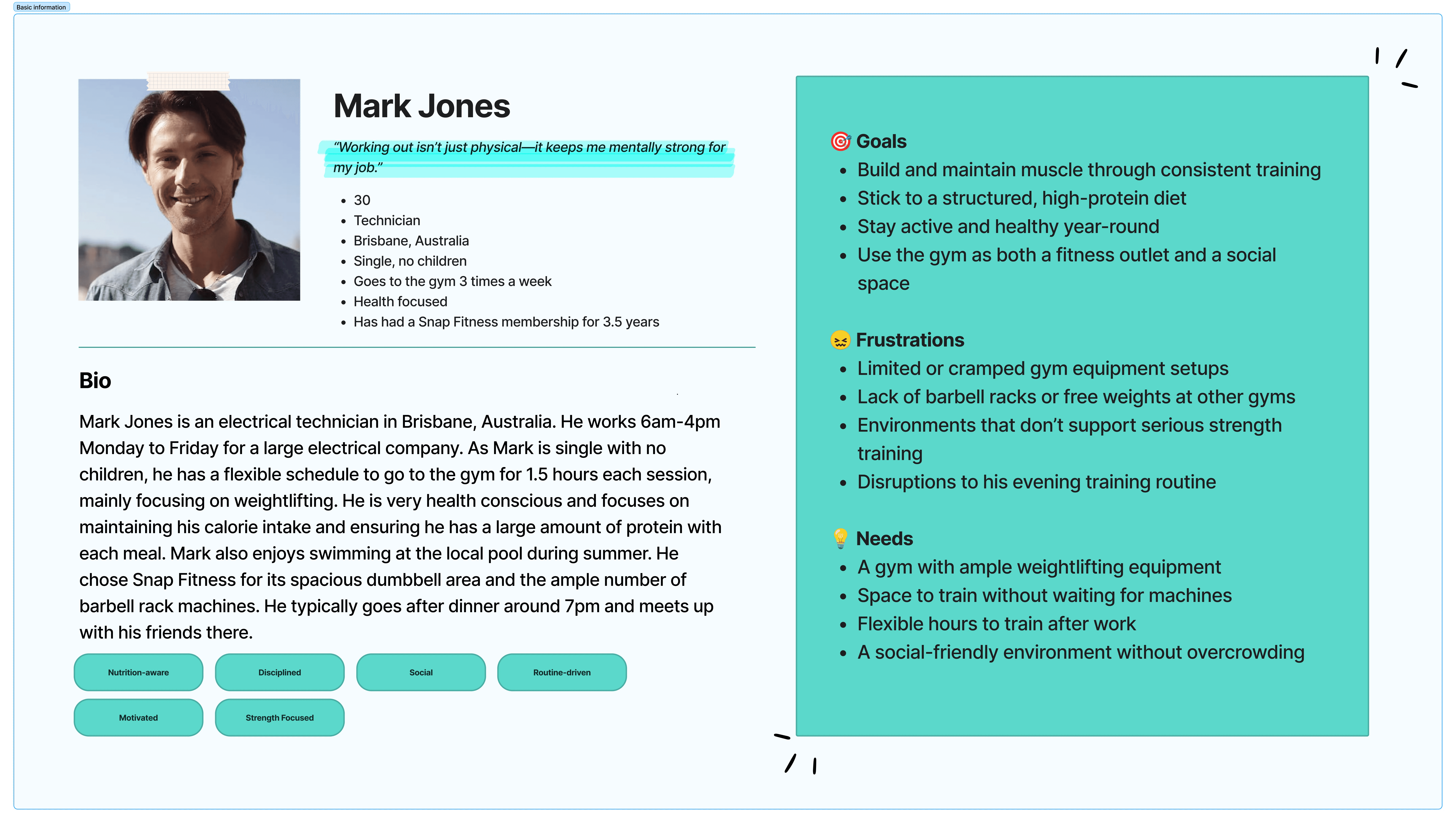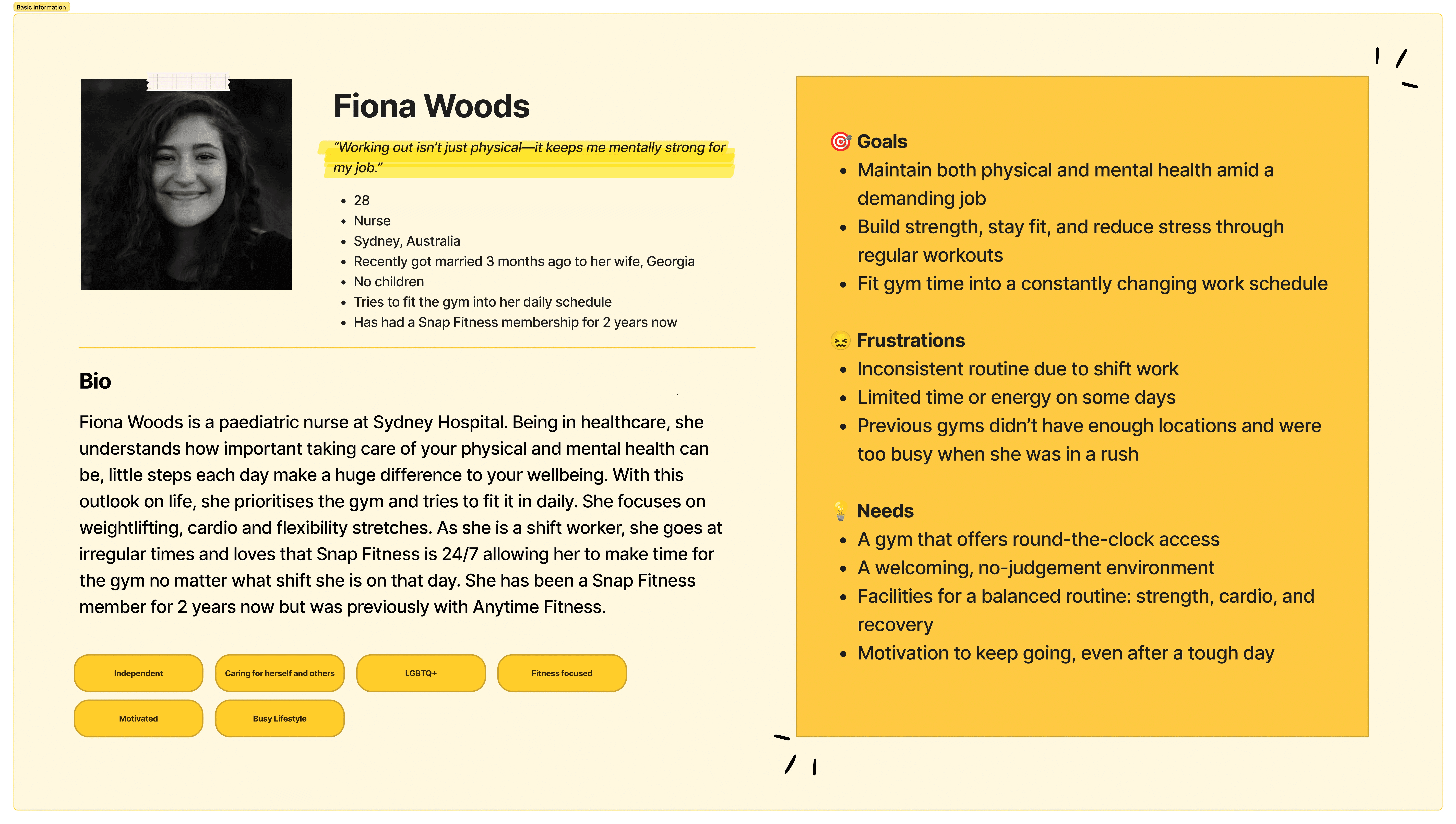 After conducting research about users and Snap Fitness, I developed two personas that matched the identity of our target users.
