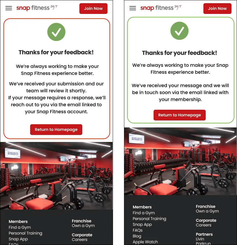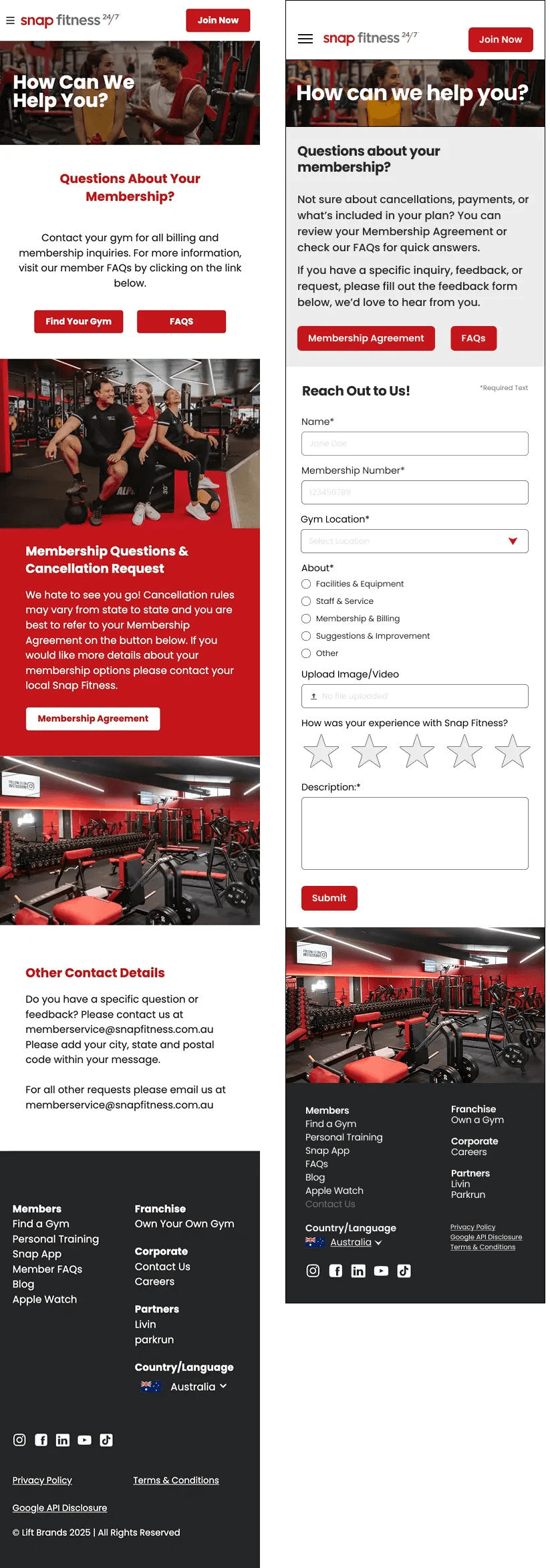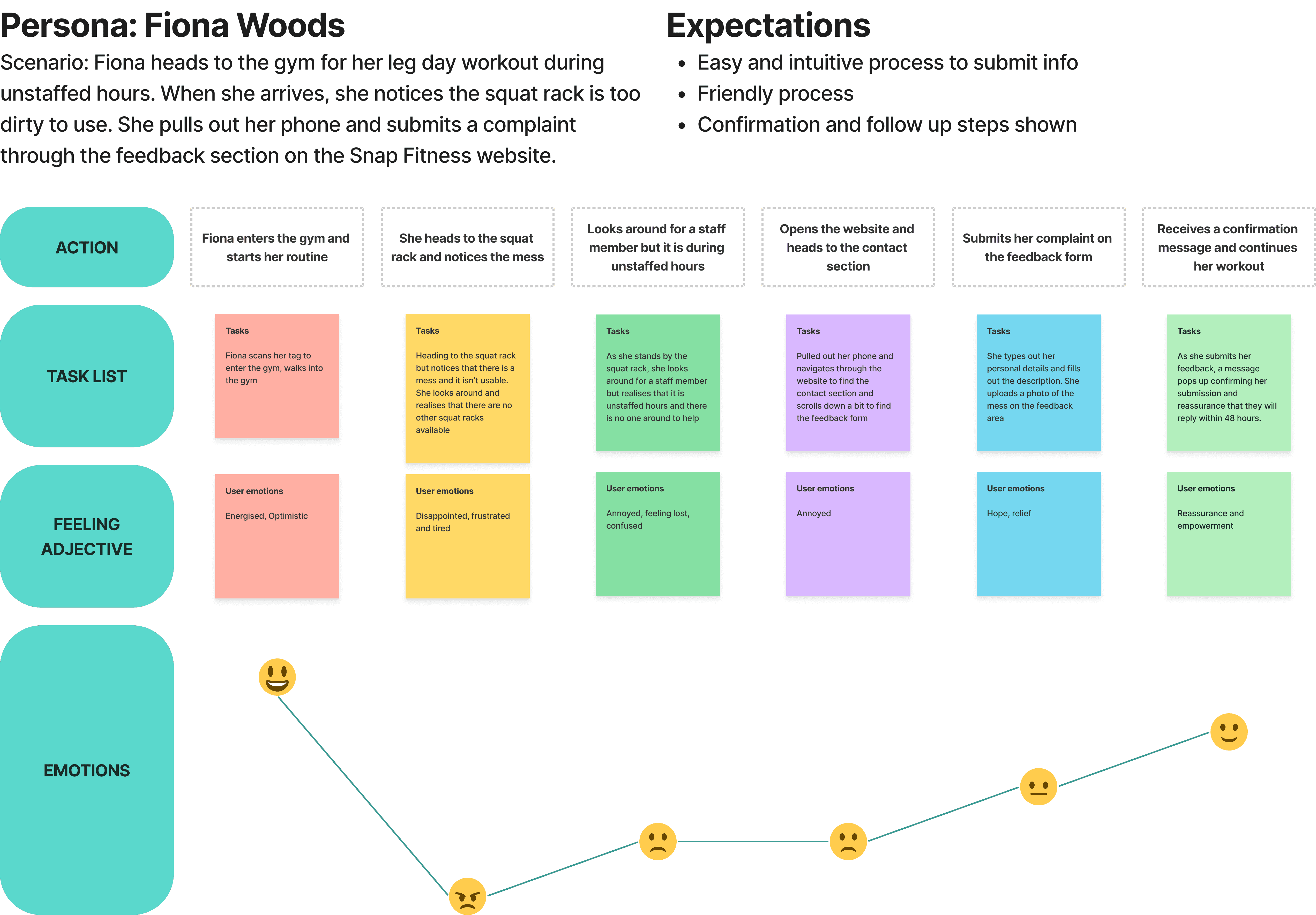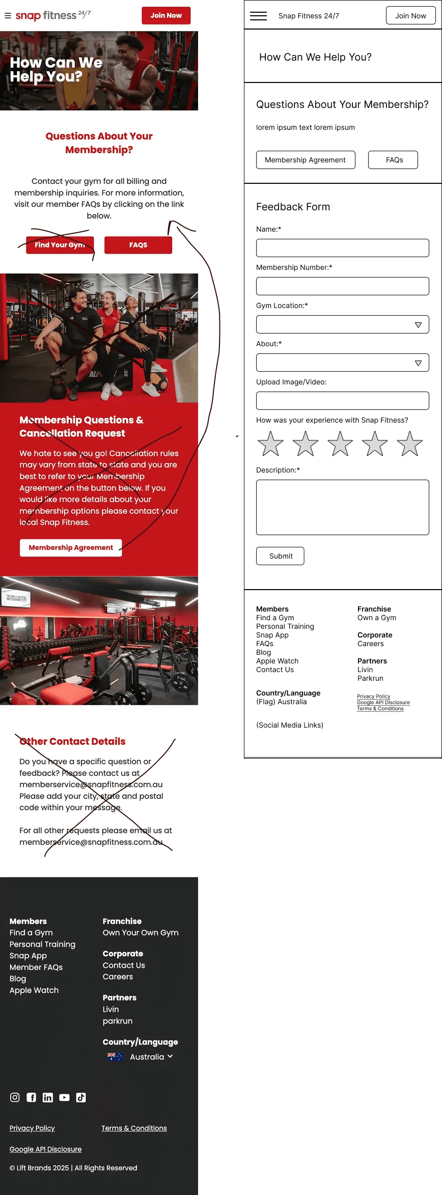 Users struggle to share feedback easily on the Snap Fitness website and often feel unsure whether their input is acknowledged or valued. This disconnect can make them feel like just another transaction rather than a supported part of the experience.