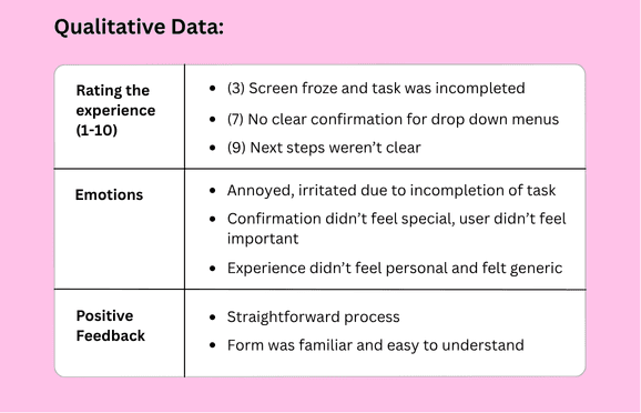The task was to fill in the feedback form, and follow up questions about their experience were asked after.
